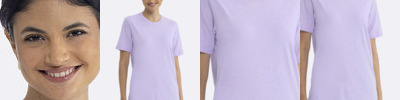 3.5-ounce, 65/35 poly/combed ring spun cotton, 40 singles Solid colors: Black, White, Shiraz, Smoked Paprika and Stonewash Green (the remaining colors are heathers) 1x1 rib knit neck Double-needle edge stitch at neck Shoulder to shoulder taping Satin label Side seamed